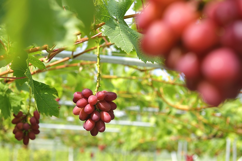 紅ぶどう園の「神紅」は、一粒一粒に宿したこだわり・情熱と自然の恵みが生み出した高級ブドウです。